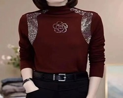 NT$1299[秋冬新款] 雙面絨拼色上衣,上身保暖不漏風,洋氣顯瘦顯氣質,不挑年齡不挑人,多色可選詳情 - 山茶花燙鑽長袖NT$950