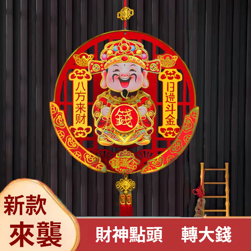 點頭財神掛家中 喜慶又好看 萬事不用愁,財神點頭 福氣錢財跟著來 錢字轉動招財進寶,一整年家裏都財氣滿滿