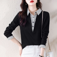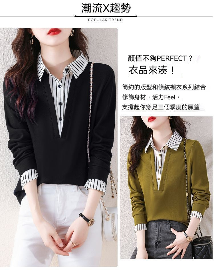 時尚假兩件打底襯衫,寬鬆遮肚顯瘦修飾身型,上身洋氣又顯白,休閒百搭顯優雅氣質