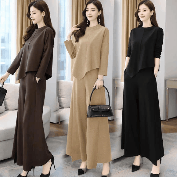 春秋裝,新款闊腿褲套裝,減齡遮肚顯瘦,洋氣休閒氣質,裙褲兩件套