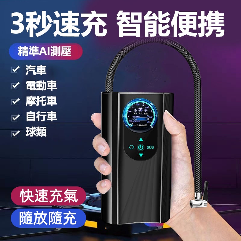 車子虧電?輪胎沒氣?【車載多功能充氣泵】 10秒快速充氣,秒變車界速充神器!一機多用 充氣,搭電充電,胎壓監測,照明